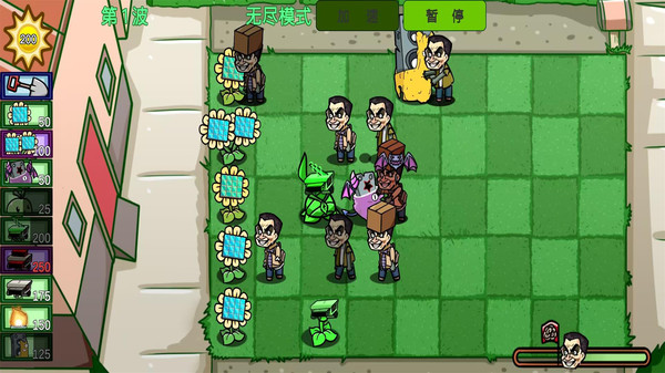 无尽模式:无限波次僵尸,击杀 “戴夫博士” 等特殊僵尸获钻石,兑换稀有植物。