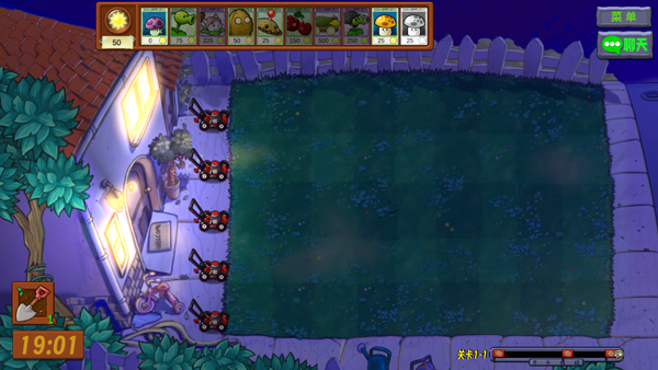 场景分配:前院布置 2-3 路防御(豌豆射手 + 坚果墙),后院种植 3-4 株向日葵(白天)或阳光菇(夜晚),保障基础资源供给。