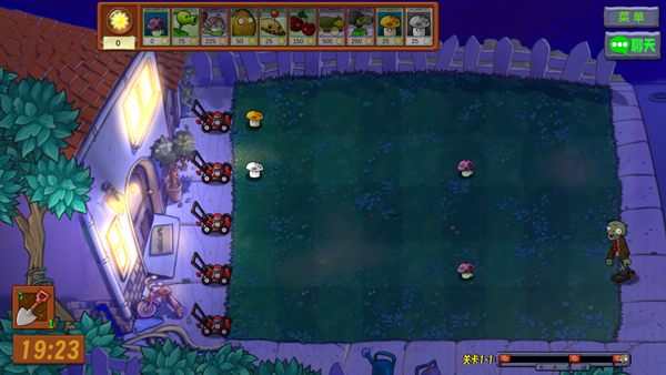夜晚模式:向日葵停产,依赖阳光菇 + 月光花维持资源链;幽灵僵尸需灯光显形,提前布置路灯花 + 攻击植物。