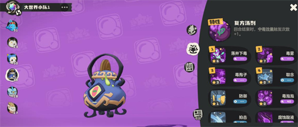 嘟嘟锅是偏向战术型的毒属性精灵,PVE战斗中主要承担持续消耗型输出。特点在于可以通过毒系技能不断叠加中毒状态,让敌人持续掉血,慢慢削减高血量BOSS。在开荒阶段,嘟嘟锅常用于挑战一些会频繁释放增益技能的BOSS,当敌方如帕尔萨斯不断叠加强化效果时,嘟嘟锅可以利用毒雾等技能将这些增益转化为中毒效果,快速积累伤害。随着回合推进,中毒层数越高,持续伤害也会越明显,因此在部分BOSS战中能起到“逃课打法”的作用。