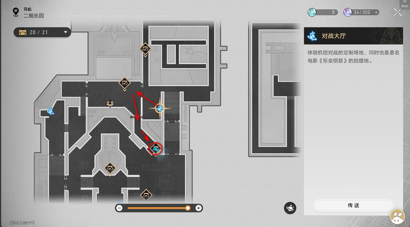 传送到珠星大厦的【对战大厅】锚点,按照如下路线进入红圈内的二次元JUMP