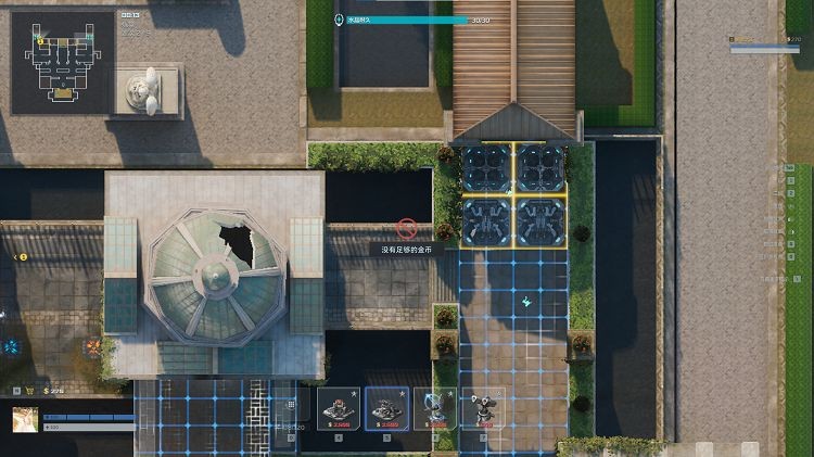 因此,当前关卡的陷阱布置方法为:左右廊桥前段外侧边分别布置3座防空导弹,而后将破坏者升至2级,有多余金币时,将自修复磁暴塔升级至3级,最后,在地图左右两边各点缀2座防空导弹。