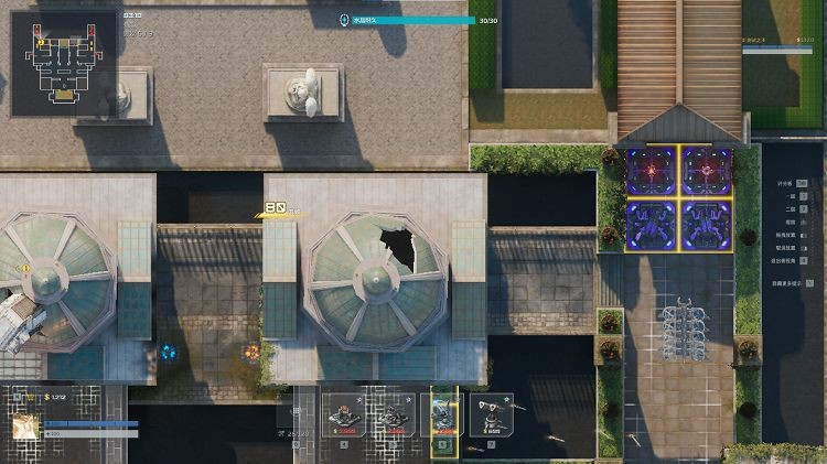 除了廊桥处的3个固定防空点外,上图台阶后右侧位置,台阶后高台位置,也可以点缀若干防空导弹,用于缓解后续关卡的防空压力。