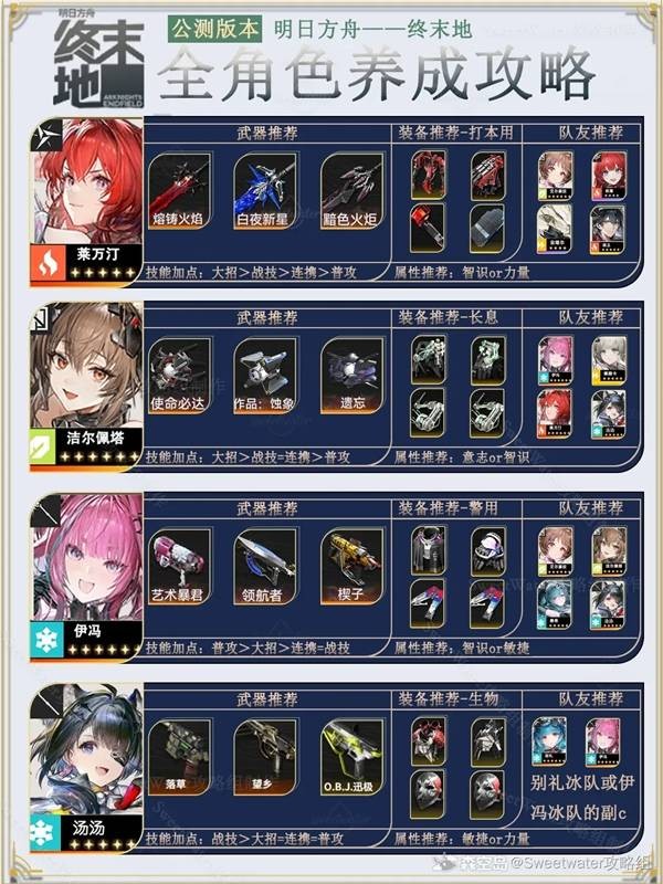随着明日方舟终末地1.2版本全面革新,全新角色与多元玩法重磅登场,主流培养体系迎来大幅变动。每位干员定位独具特色,资源分配规划失误极易造成养成浪费,拖慢队伍成型节奏。本篇带来完整版角色培养攻略,精准适配新版本环境,助力玩家高效养成强势阵容。