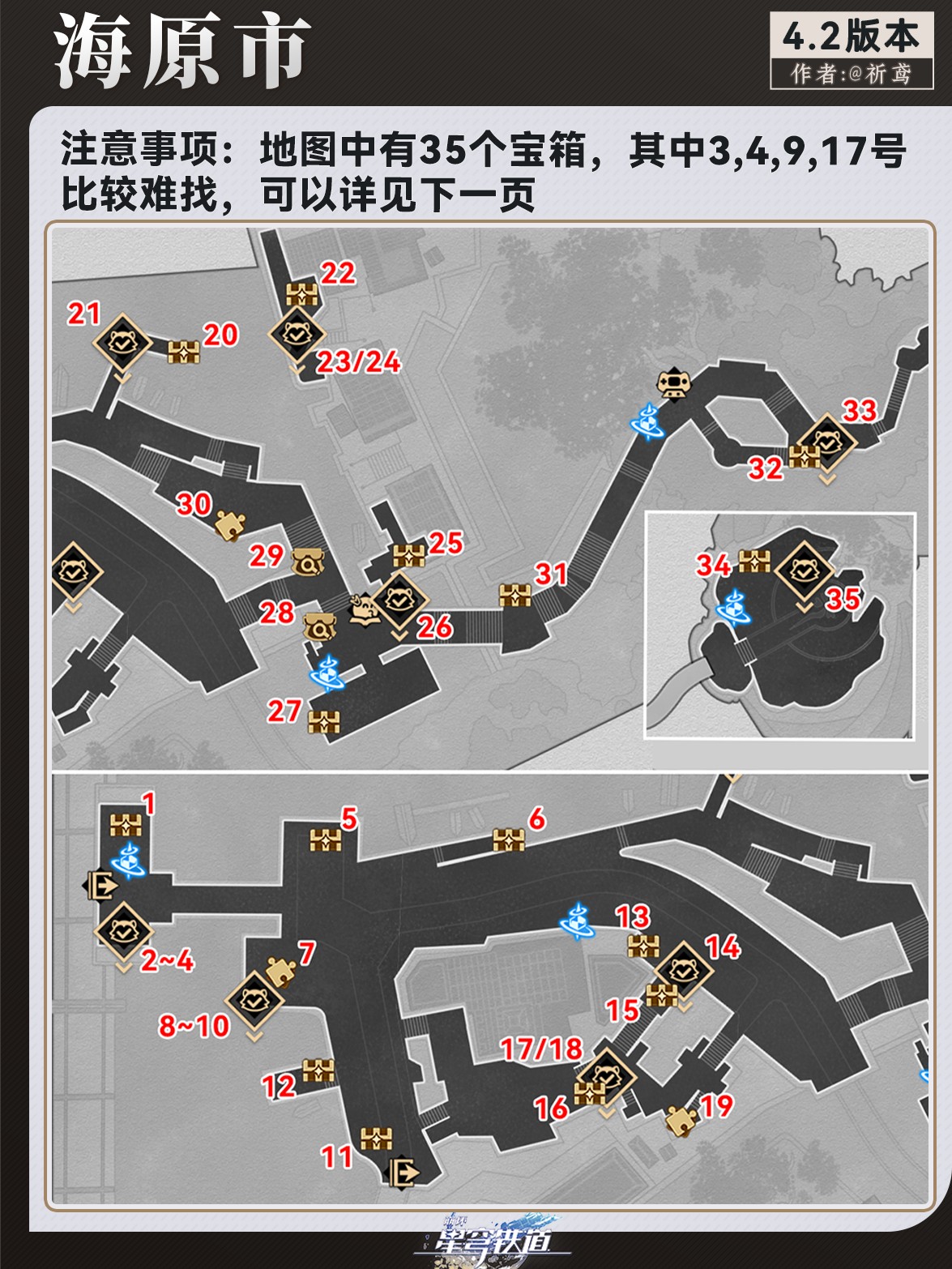 崩坏星穹铁道4.2版本海原市全宝箱收集点位分享 (1)这张地图一共有25+3+7+1=36个宝箱