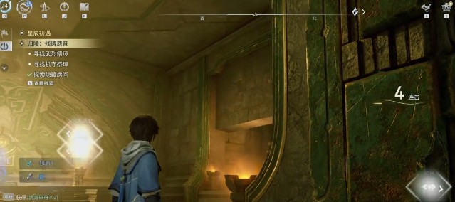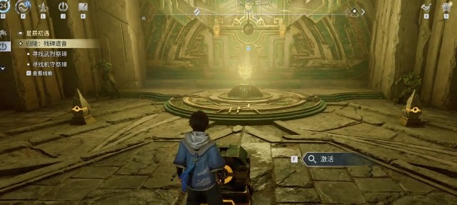 拿到之后就从南边的小门出来,右转,来到悬崖的边上,乘坐电梯走上高层。向东边走到外侧的平台右转回到原先的位置。到篝火处,按照任务指引前进,进入到房间,然后下蹲之后就可以清理小怪。激活中心的机关按照蓝光顺序去解谜顺序就是左下,右上,左上,右下。按照这一个顺序完成之后就可以打开隐藏门,获得第二个。接着继续往北走,进入到前方楼梯之后就可以看到有一个石板路激活左右两侧的机关。石板路就会直接升起来,然后上楼去清理小怪拿到第三个。把这三个全部凑齐之后,按照任务的指引就可以重新回到遗迹中心。就能够完成所有的任务,并且还会解锁大型的解谜任务末解的青铜战歌。