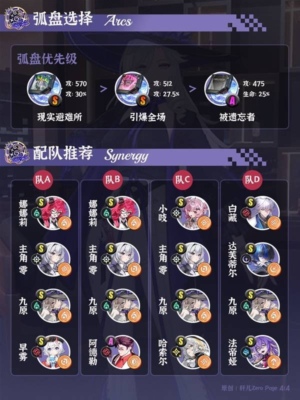 九原为灵属性角色,相邻可进行环合属性为光/咒以及光+相。当前主要搭配娜娜莉互相叠森林萤火之心效果。其余位置可带主角+阿德勒/早雾。小吱主C队,可搭配哈索尔主角激活盈蓄体系。白藏主C队,可与白藏覆纹环合增伤,推荐度一般。优先搭配娜娜莉。