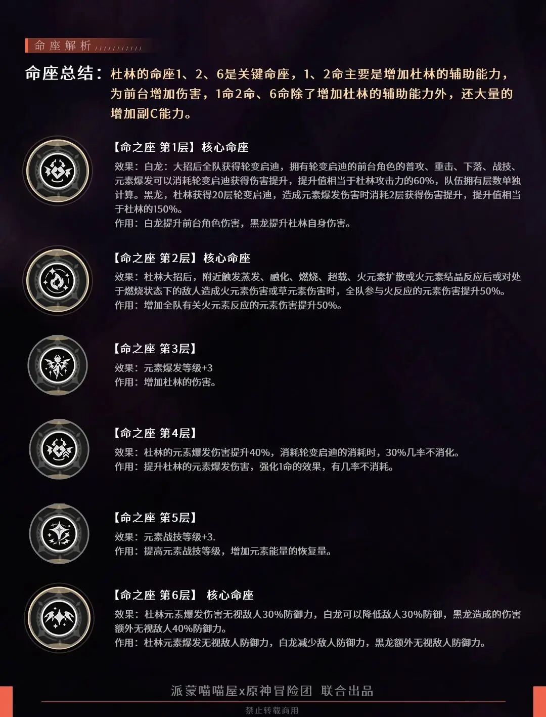 效果:释放战技后替换普攻和战技。再次释放战技造成一次火元素伤害,进入白龙状态;释放普攻造成三次火元素伤害,进入黑龙状态,战斗中进入白龙或者黑龙时,还会为杜林恢复一定能量