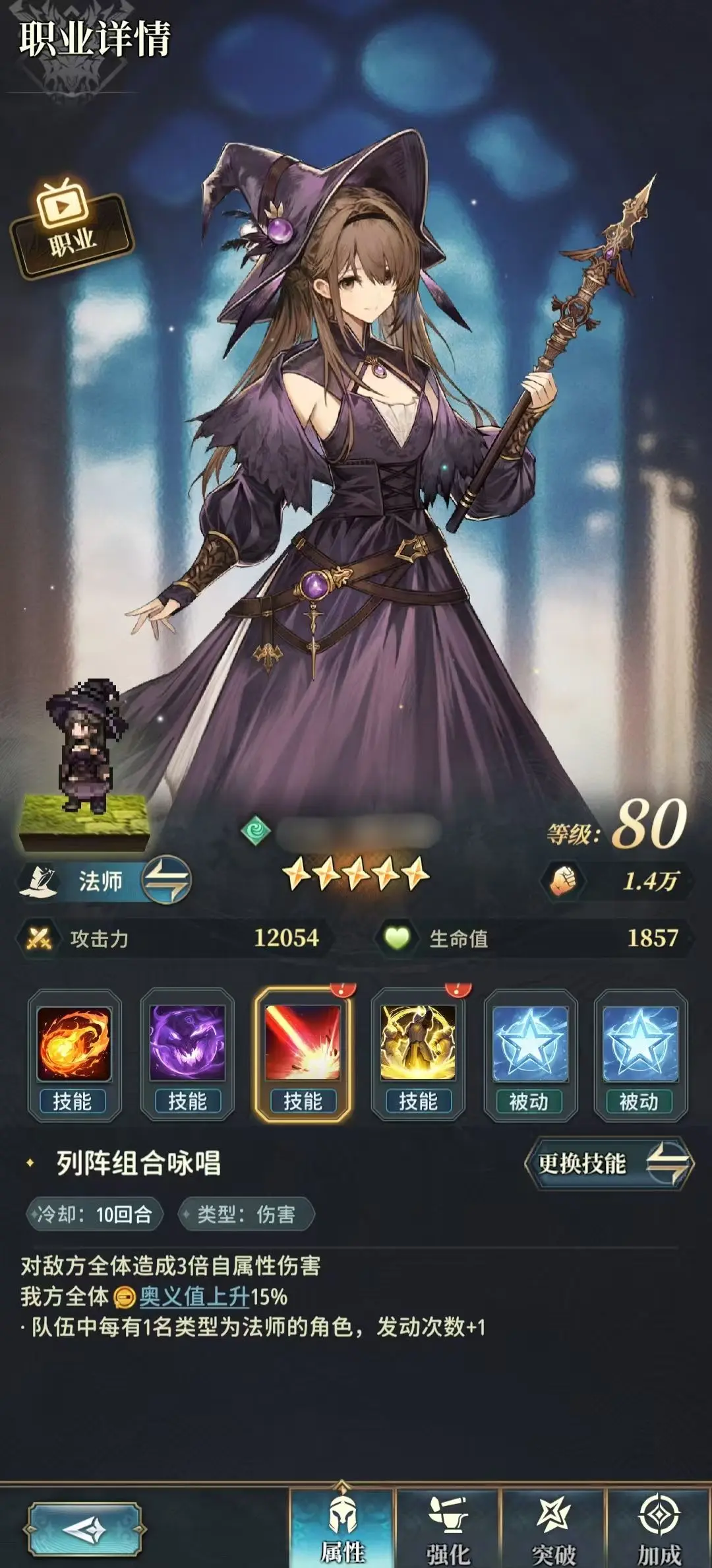另外,法师主角的核心技能“列阵组合咏唱”很实用——前排法师角色越多,全队的伤害和奥义充能速度就越快。搭配骑士团开局赠送的30% 奥义能量,只要凑够4 名法师,就能直接满能量释放奥义;同时主角的“干扰”技能能减少敌人25% 的防御,和队友的减防技能配合,能叠满50% 的破甲效果,进一步提升输出效率