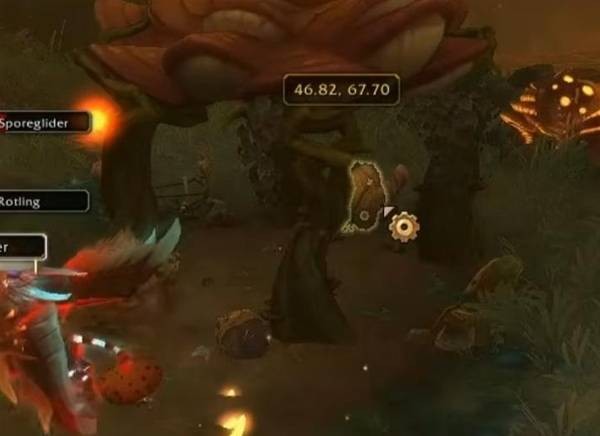 目标:在地上拾取「真菌木槌」(槌子是发亮状态)。拾取时会生出几只小怪,清理掉即可。