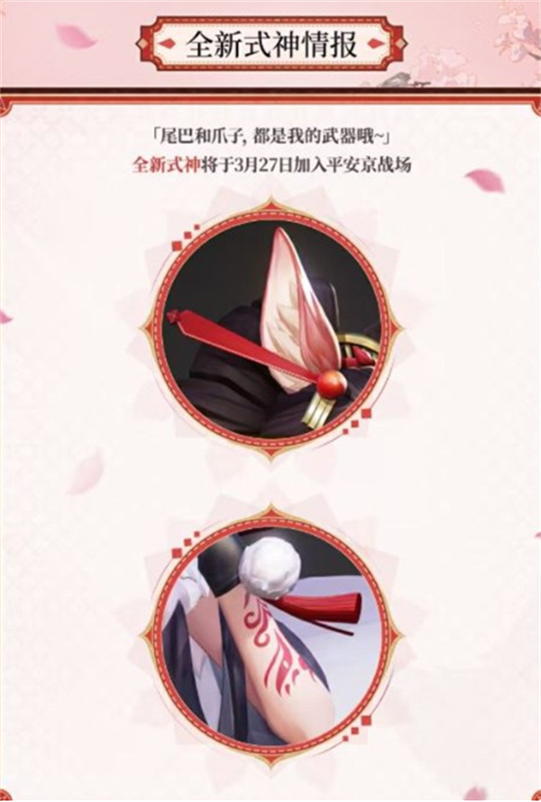 决战平安京S33赛季定档3月27日开启,全新式神尾巴与爪子登场,同步上线赛季皮肤与赏金特典皮肤。愚乐谐行系列趣味活动开启,登录即可领取多重福利,畅享全新对战体验。