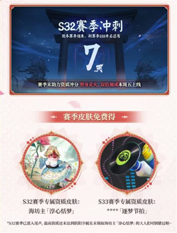 随着S33赛季临近,S32赛季进入冲刺阶段,专属资质皮肤海坊主「淳心恬梦」即将下架。尚未达成资质的大人请抓紧时间获取。