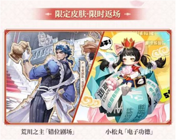 S33赛季期间,荒川之主「错位剧场」与小松丸「电子功德」两款限定皮肤将限时返场,错过的玩家可把握机会入手。