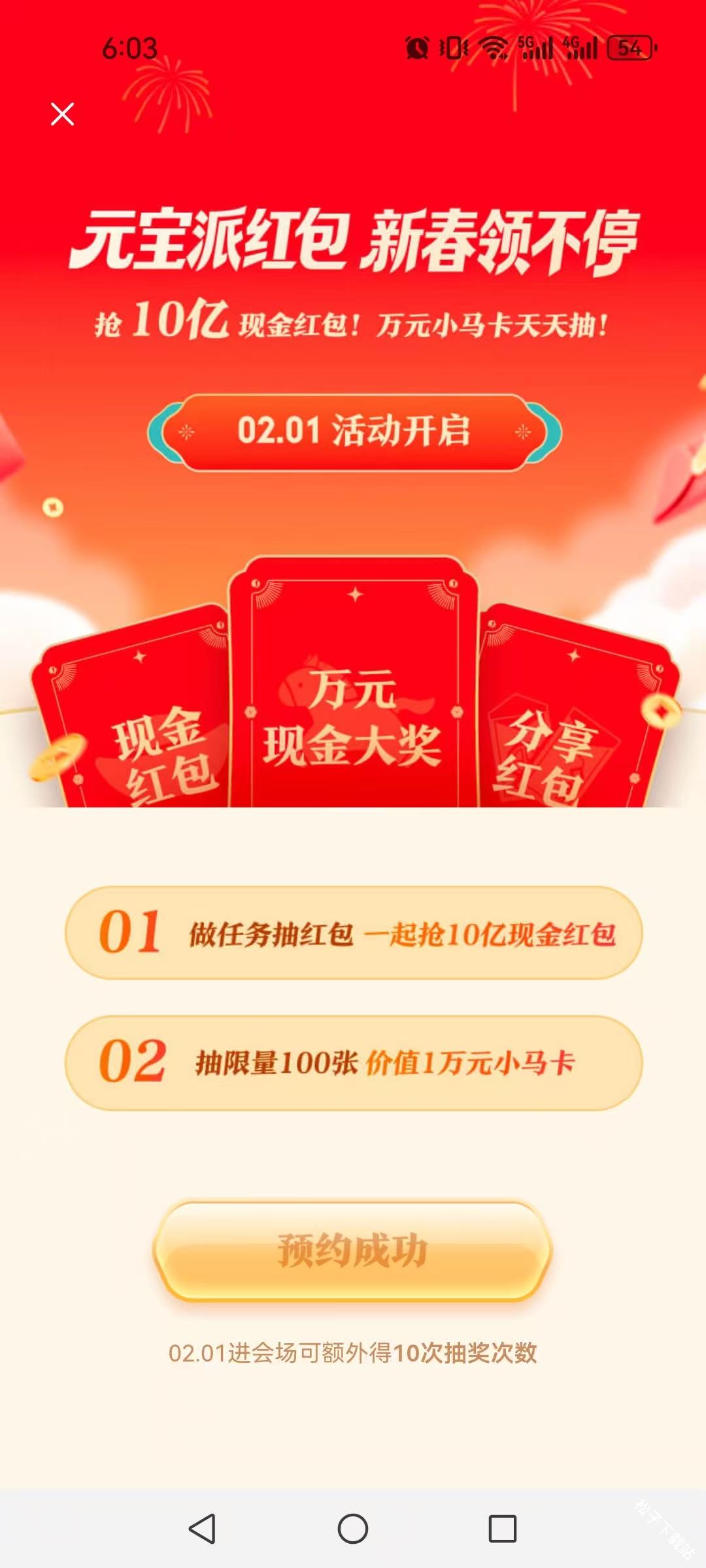 4. 进入活动预约页面后自动完成预约,页面将显示预约成功,同时提示2月1日进入会场可享额外10次抽奖次数。