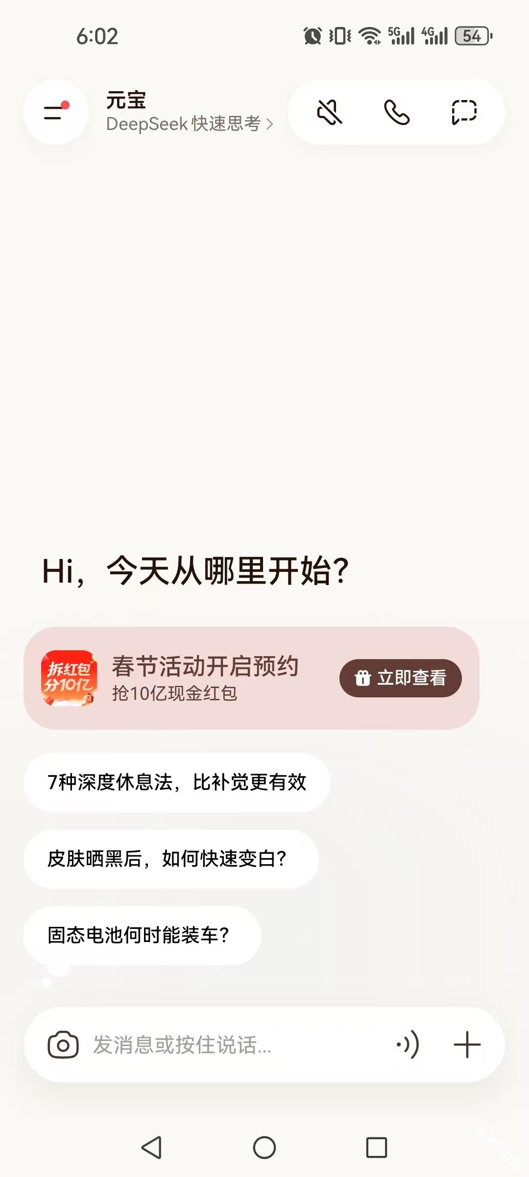 1. 打开腾讯元宝 App,等待应用加载完成进入主界面即可进行后续操作。